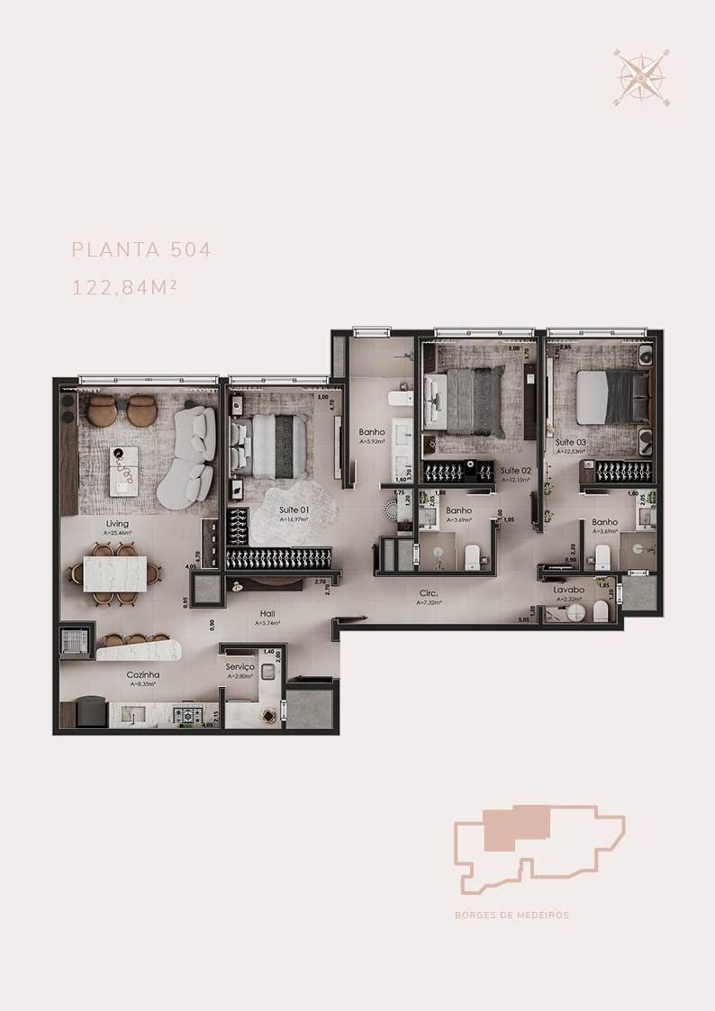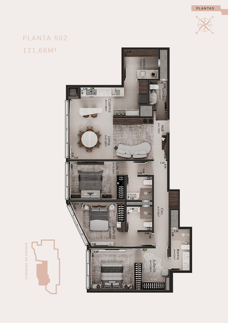 APARTAMENTOS COM 2 SUÍTES E COBERTURAS COM 3 SUÍTES.