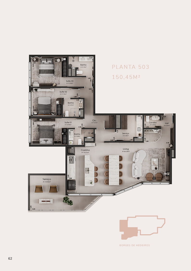 • 3 coberturas de 3 suítes
