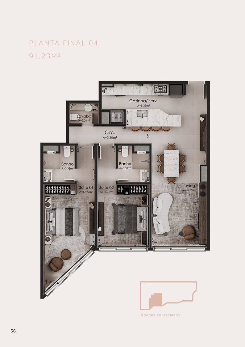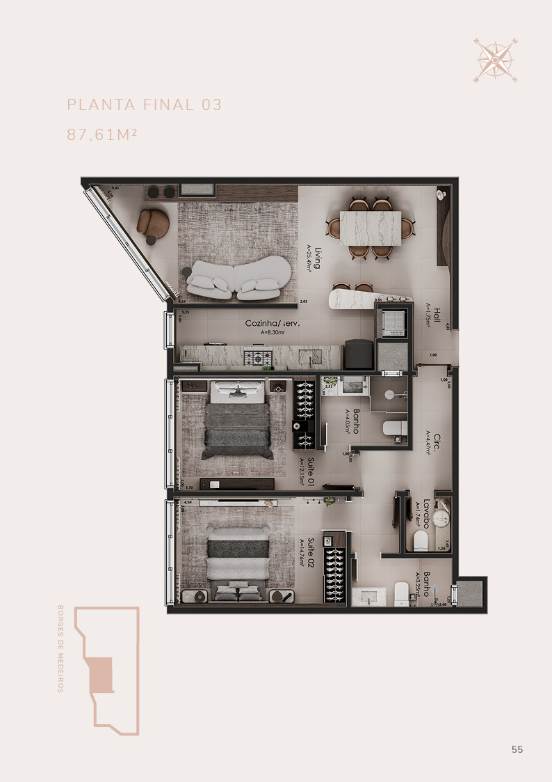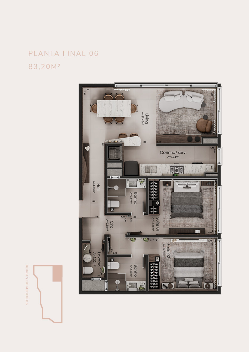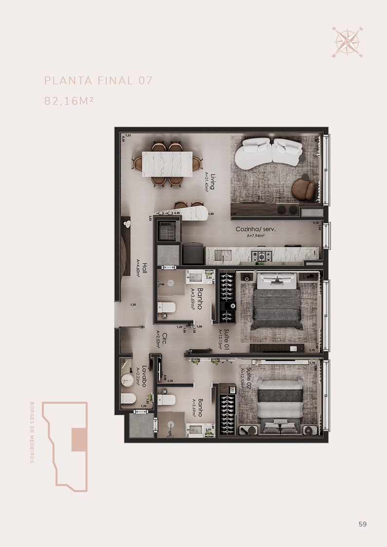 • 21 apartamentos de 2 suítes