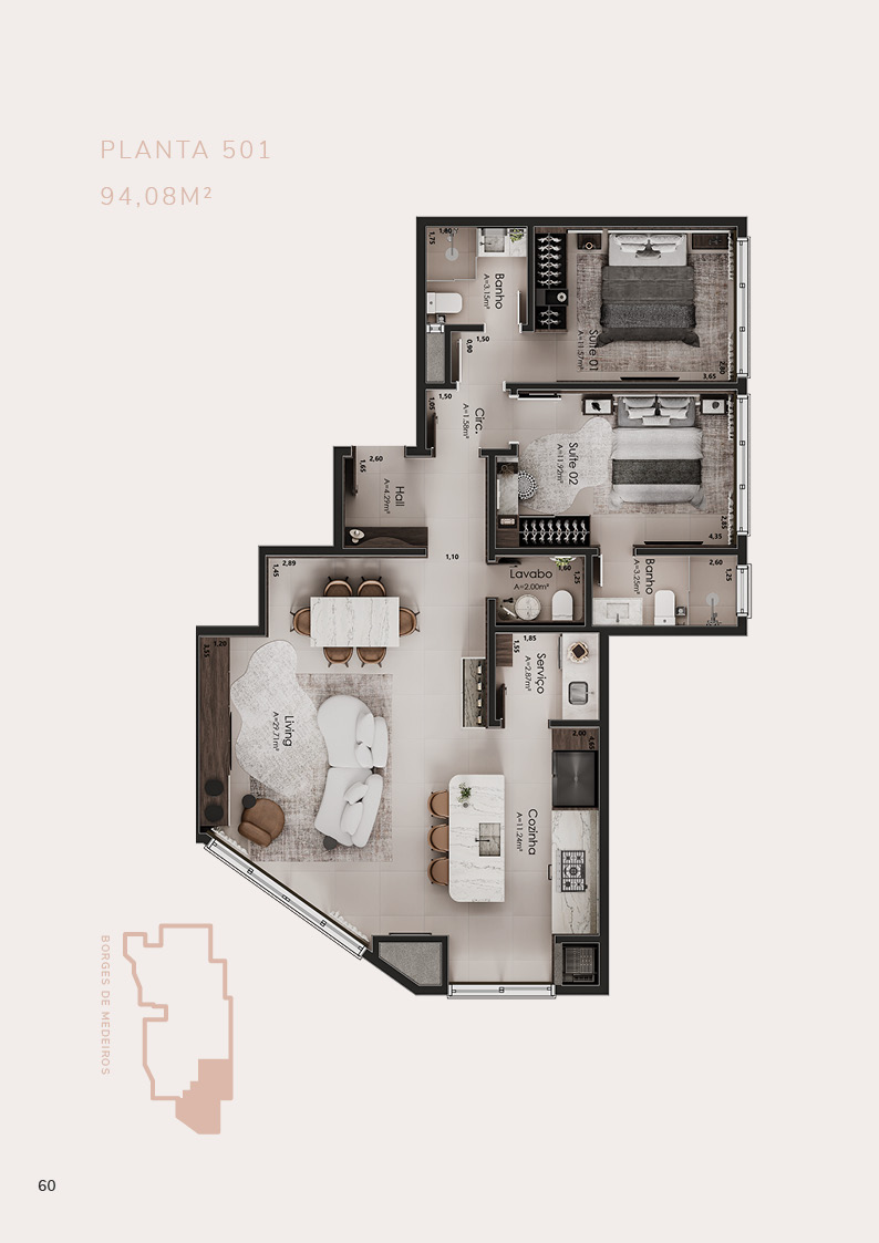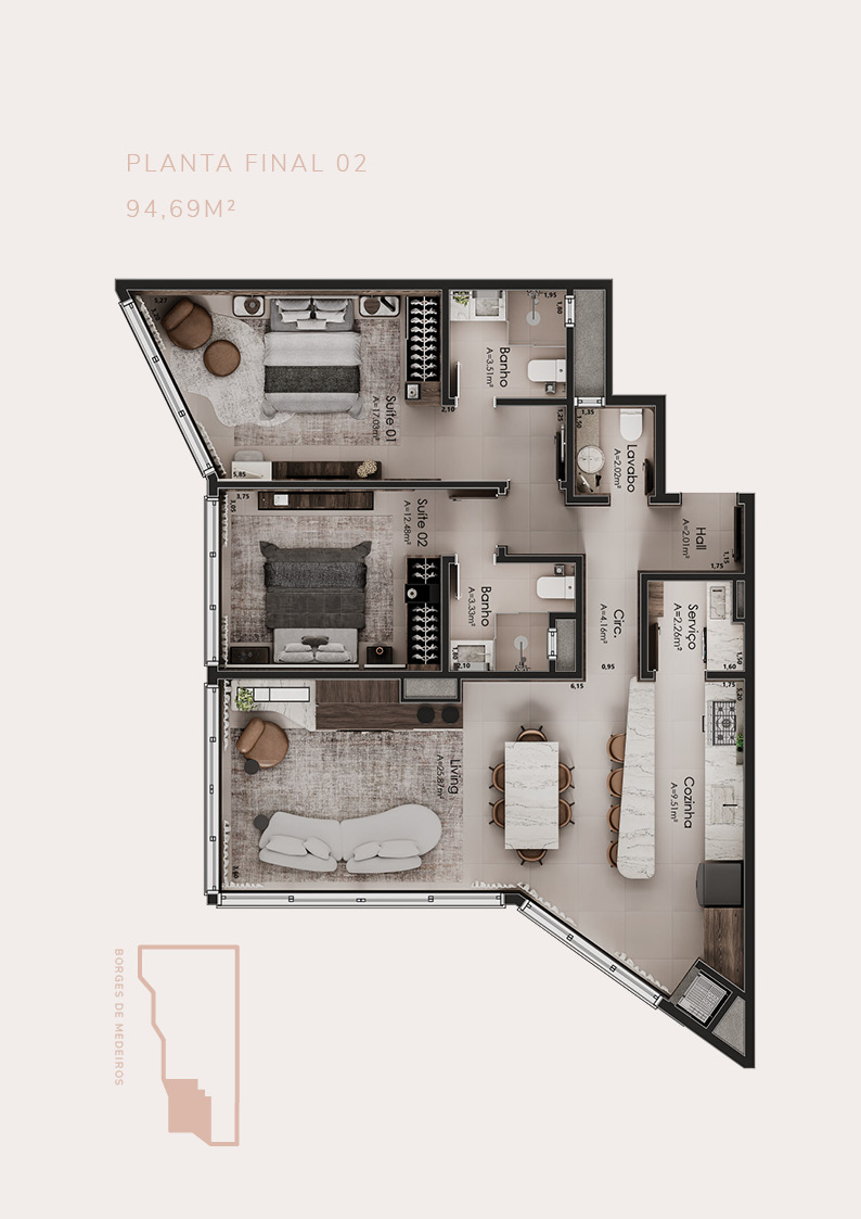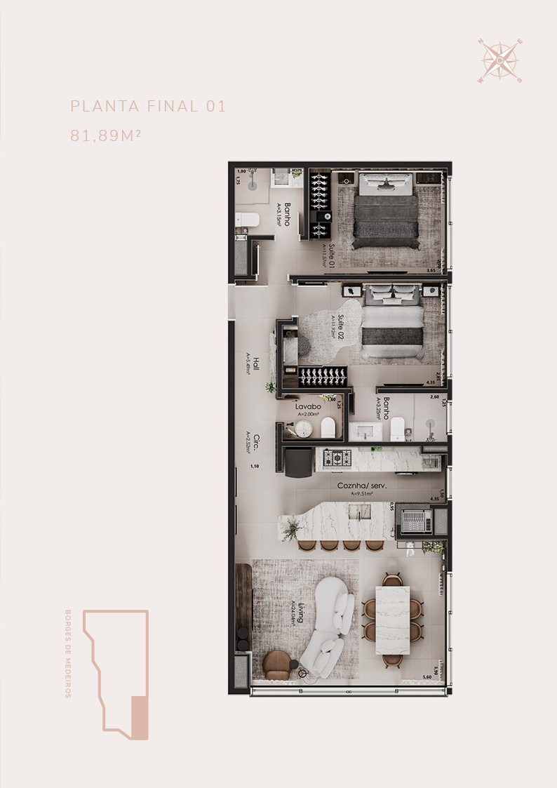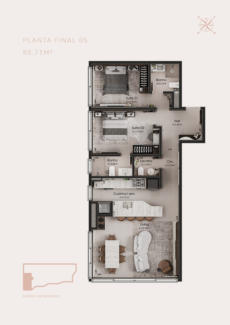 • 21 apartamentos de 2 suítes